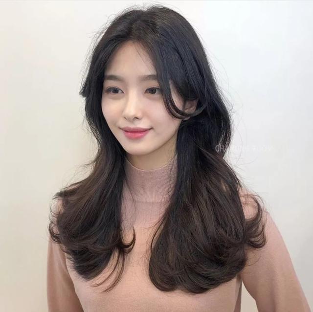 整形燙的這款中發髮型盡顯頭型飽滿好看,搭配一款外翻燙卷的空氣劉海,起到修顏不說更是倍添優雅氣質,最後配上淺棕色的染髮就更完美動人了。