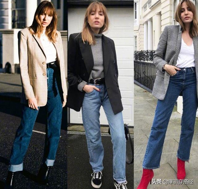當日常穿西裝的時候,不想給人帶來太沉重的正式感,那麼小仙女就要“拋棄”西裝褲了。秋季西裝穿搭指南,用牛仔褲或者休閑的闊腿褲來搭,時尚度絕對輕鬆暴漲。